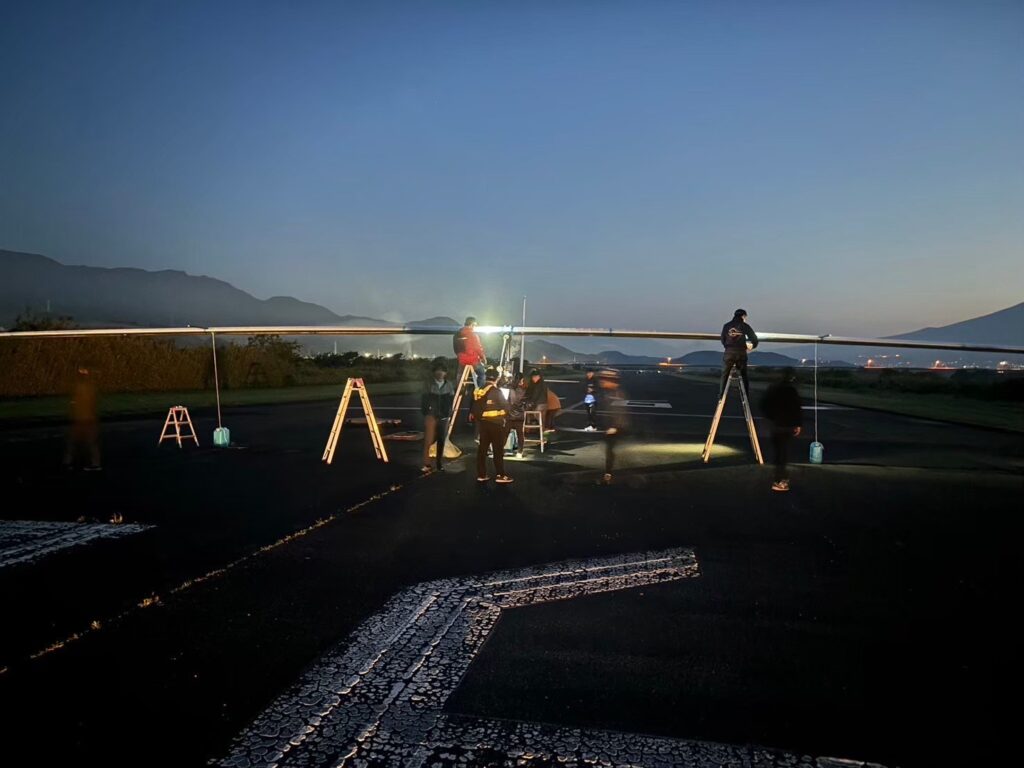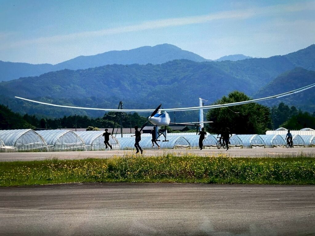 鳥人間コンテスト出場に向けて、出来上がった機体を滑走路で飛ばす試験飛行のこと